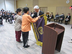 その後の校旗返納では、学校ごとに校長先生と代表児童生徒が校旗を掲げて正面に立ち、児童生徒から、これまでの学校での思い出や閉校までに学校でやりたいことなどを発表した後、校長先生から受け取った校旗を市長へ返納しました。