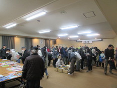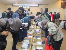 毎年実施している人気の事業で、祝日ともあり開始前には80人以上が並ぶ盛況ぶり。13時に開場すると、来場者の皆さんはお宝本を探し求めて会場をくまなく回り、お目当ての本を袋いっぱいに詰め込んで、笑顔で会場を後にしていました。