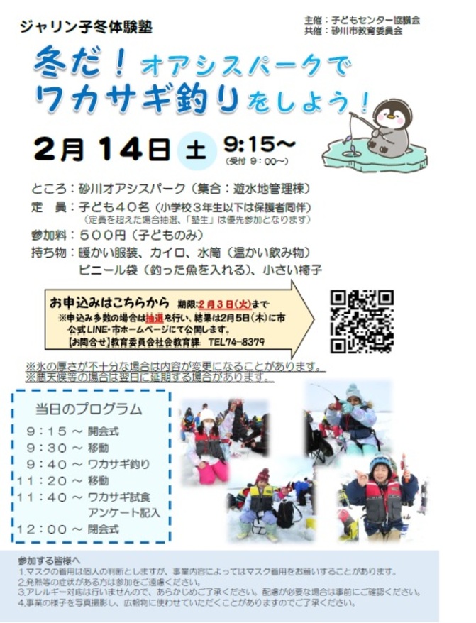ジャリン子冬体験塾~冬だ!オアシスパークでワカサギ釣りをしよう!~