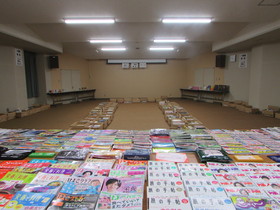 毎年実施している人気の事業で、祝日ともあり開始前には80人以上が並ぶ盛況ぶり。13時に開場すると、来場者の皆さんはお宝本を探し求めて会場をくまなく回り、お目当ての本を袋いっぱいに詰め込んで、笑顔で会場を後にしていました。