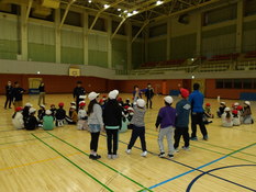 11月28日(金)、総合体育館に市内小学校の4年生が集まり、「5校交流会」が行われました。残念ながら、空知太小学校の4年生は前日からの学年閉鎖のため参加できませんでしたが、4校から65名の児童が参加しました。