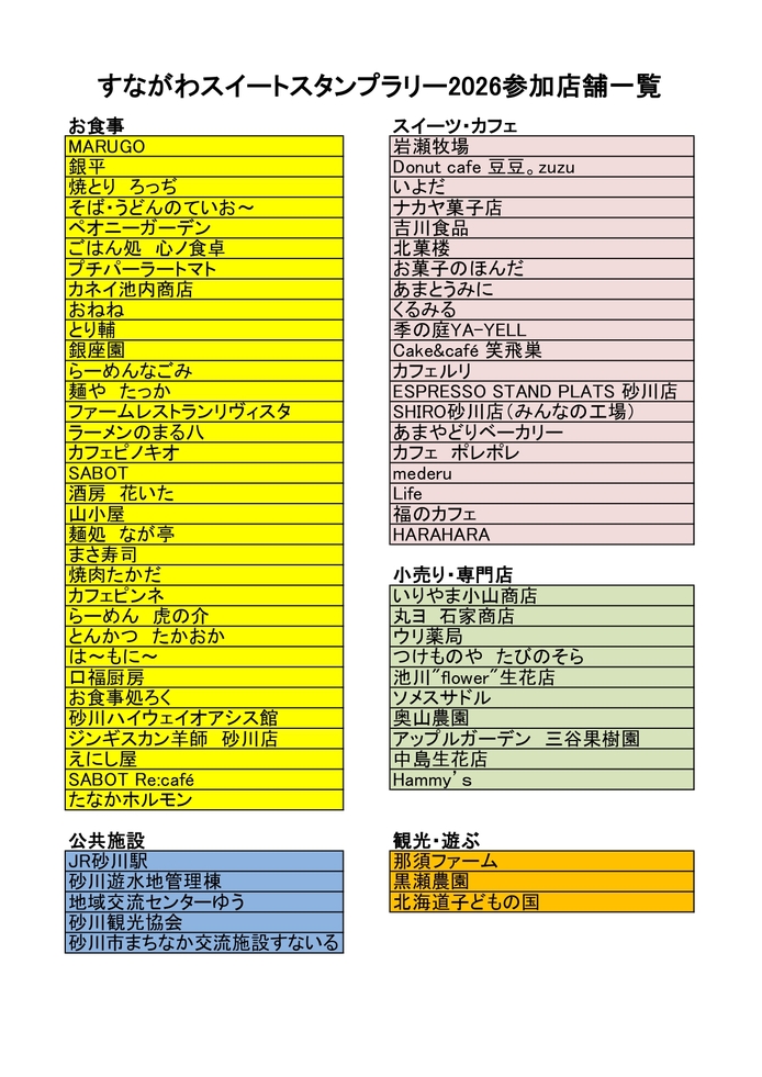 すながわスイートスタンプラリー2026が開催されます
