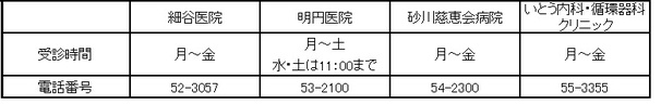 ≪市内対象医療機関≫ 〇砂川市立病院〇細谷医院〇砂川慈恵会病院 〇いとう内科・循環器科クリニック
