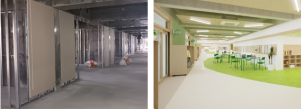 2ndステージ普通教室とリビング付近