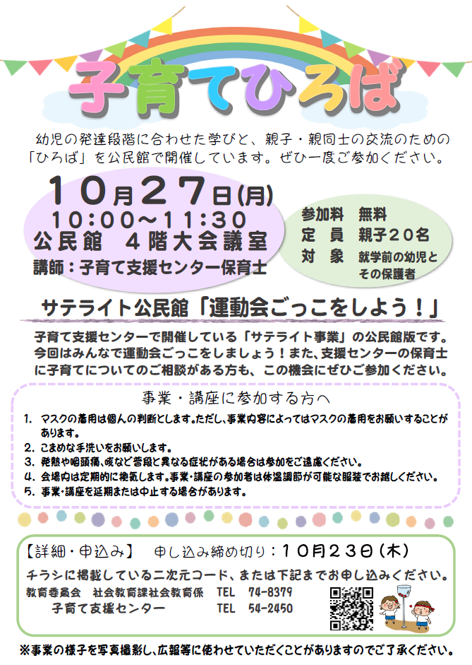 - 連絡先 社会教育課 ℡74-8379、子育て支援センター ℡54-2450