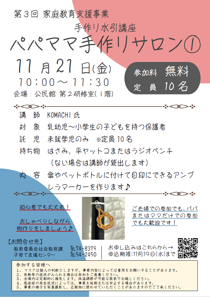 パパママ手作りサロン①(手作り水引講座)開催のお知らせ