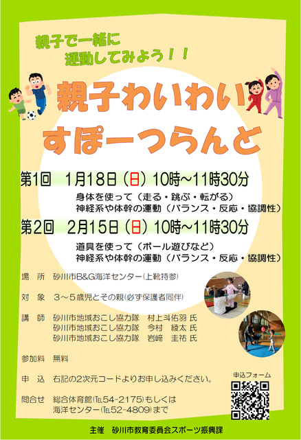 親子わいわいすぽーつらんどを開催します。親子で一緒に体育館で思いっきり運動しませんか。