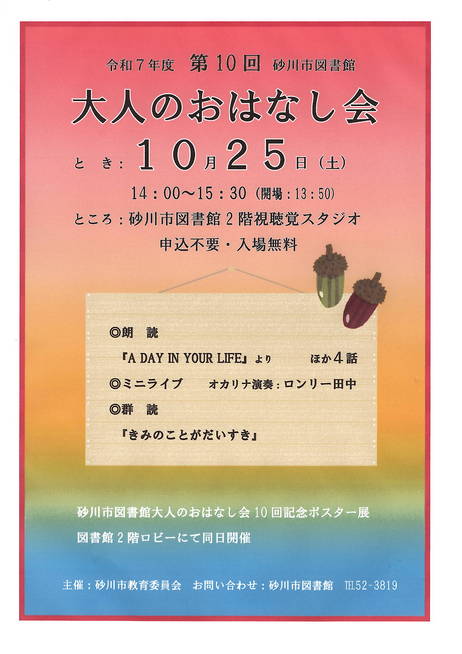 - ところ 砂川市図書館2階視聴覚スタジオ