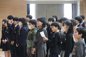 入学式では、70名の新1年生が砂川学園に入学しました。少し緊張した様子の子どもたちでしたが、9年生のお兄さんお姉さんに優しく手を引かれ、たくさんの保護者の方や先生が見守る中入場しました。式が始まると、真剣な表情で校長先生のお話を聞き、立派な姿を見せてくれました。新7年生の入学式では87名が入学。これから始まる新しい学校生活を前に、期待に胸を膨らませました。