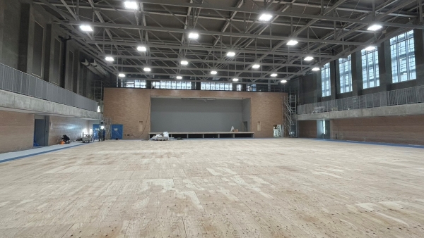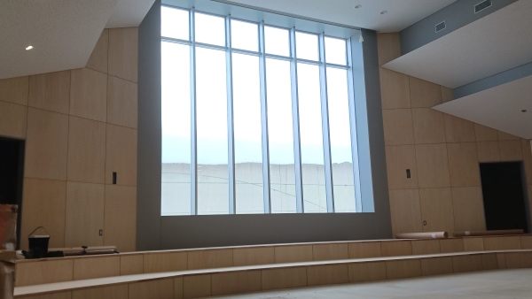 サブアリーナの壁工事 吹き抜け部にはステージが組まれています