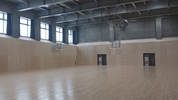 メインアリーナは競技用のバスケットコートが2面配置できる大きさです。(パースはイメージですので実際と違う部分もあります)