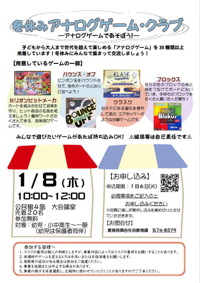 冬休みアナログゲーム・クラブチラシ