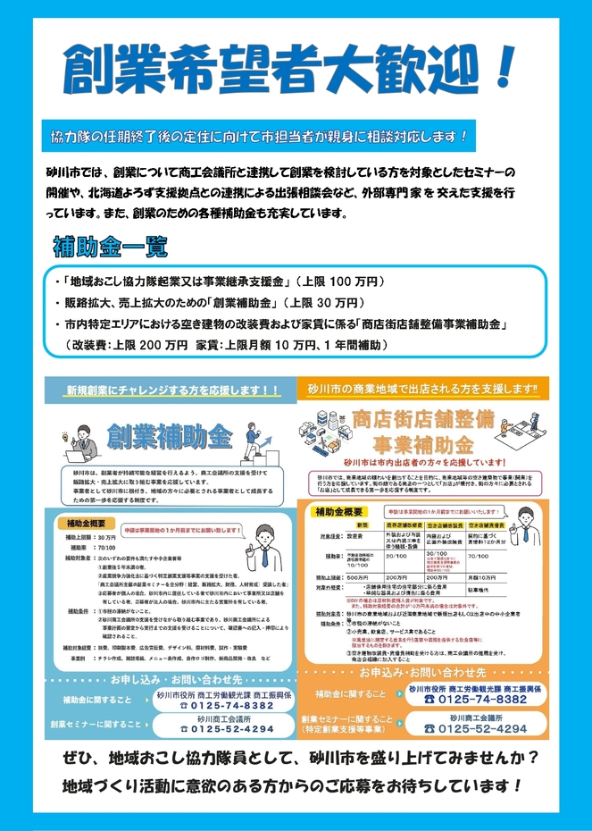 砂川市での創業を考えている方を積極的に募集しています!